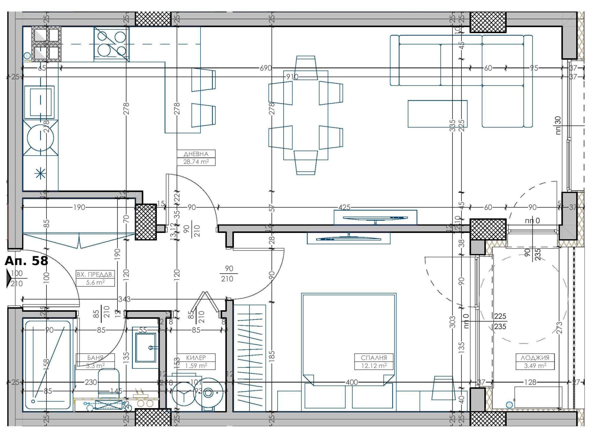 58 - Апартамент - Двустаен