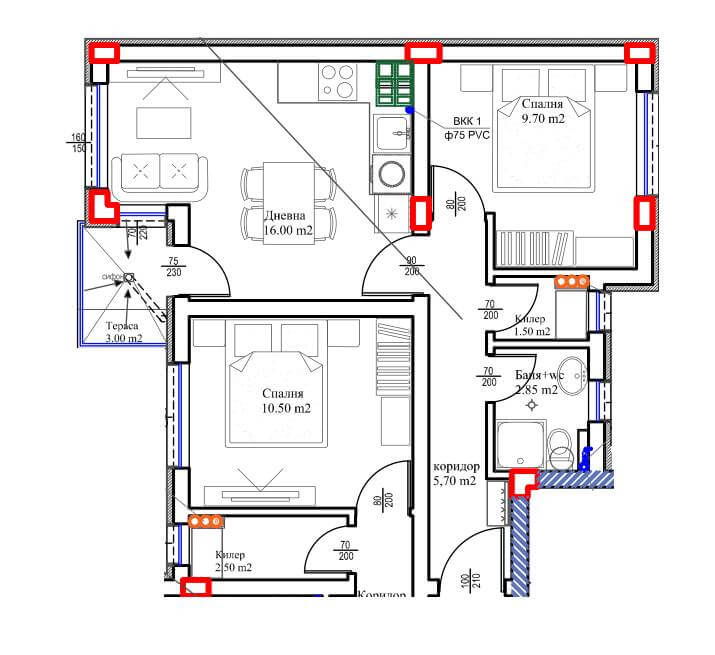 Апартамент – Дневна с кухненски бокс, спалня, баня с тоалетна, ателие, антре, коридор, тераса