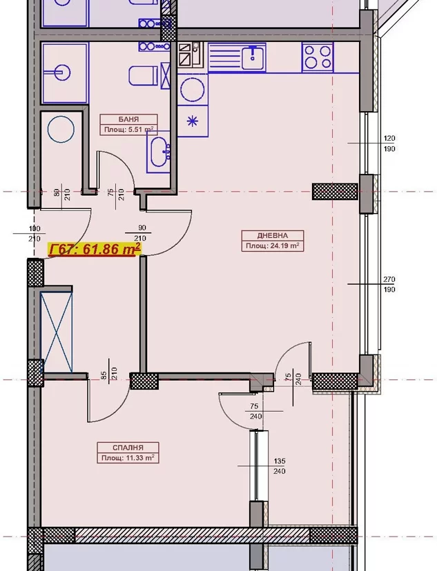 Чиста площ 61,86 m2